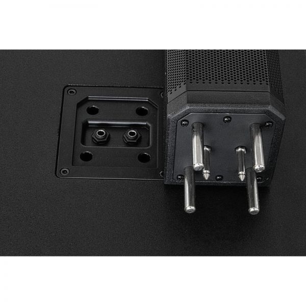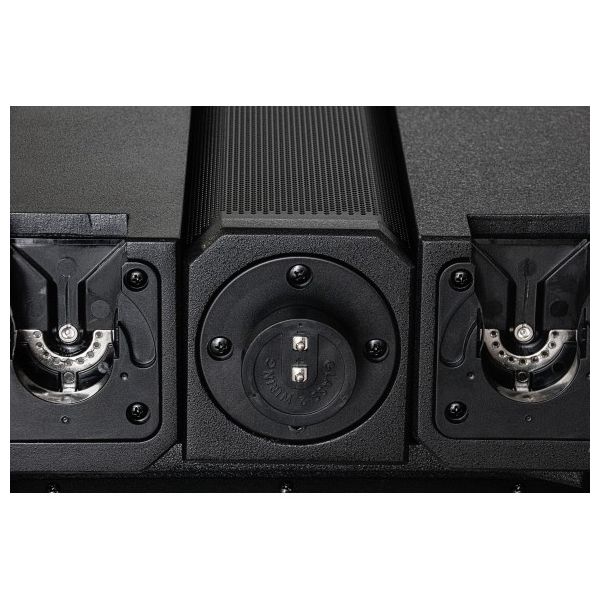 Le système se compose d'un subwoofer puissant et actif de 12 "et de 2 haut-parleurs d'aigu, chacun avec 4 haut-parleurs à large bande de 3,5". L'espace réservé optiquement adapté avec câblage intégré est situé sous les deux sources d'aigu. Particulièrement intelligent: les deux haut parleur d'aigu peuvent chacun être tournés de 180 ° et ainsi alignés exactement dans la direction du son requise.