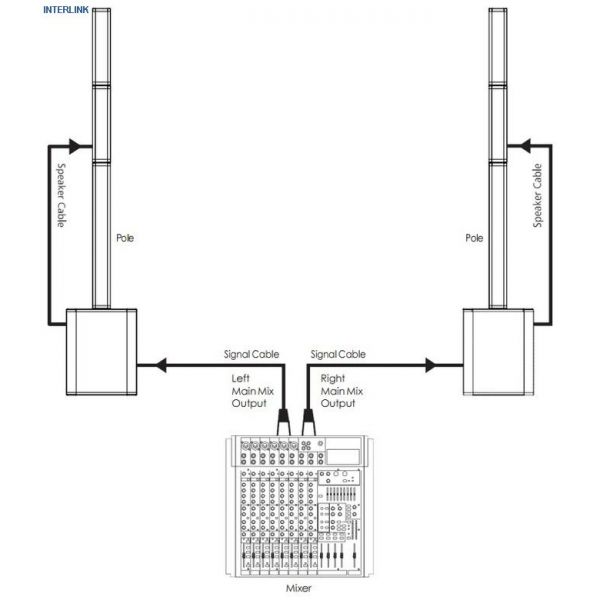Système actif complet, composé de 1 subwoofer actif 12 ", 2 haut-parleurs de ligne avec 4 haut-parleurs large bande 3,5" chacun, ainsi que des espaces réservés comme entretoises