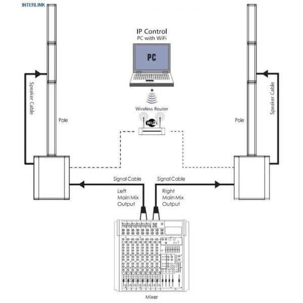 Grâce à la connexion réseau, les préréglages utilisateur peuvent être envoyés au système via des solutions logicielles DSP. Le mélangeur intégré permet la connexion directe, par ex. un instrument de musique ou un microphone. Le volume des deux entrées peut être réglé séparément. Une entrée stéréo RCA (cinch) est également disponible. La LED Clip peut également être affichée à l'avant du subwoofer. Un interrupteur pour Open / Center / User vous permet de choisir entre un système droit, des enceinte d'aigu tournés à 45 ° et des préréglages utilisateur alimentés par le logiciel. Avec cet ensemble d'équipements, le "DVA2000" est à la pointe de son secteur . Grâce à tous les composants de sécurité pertinents tels que les limiteurs de clip, la protection thermique, la protection contre la surchauffe, la protection contre les courts-circuits et le compresseur numérique, il est également très fiable.